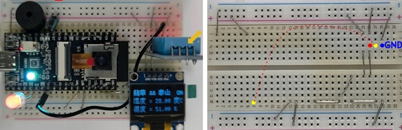 OLED SDA(21)、SCL(22)、DHT11(4)、單顆全彩LED(32)